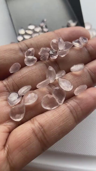 10 Pieces Calibrated 7x5mm And 9x7mm Each Rose Quartz Clear Light Pink Pear Shaped Faceted Loose Gemstones For Making Jewelry, GDS2274/30