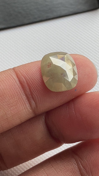 Rare 3.25CTW/11.9mm Clear White Grey Cushion Shaped Faceted Rose Cut Diamond Loose Cabochon, Natural White Diamond For Ring, DDS773/1