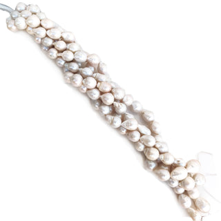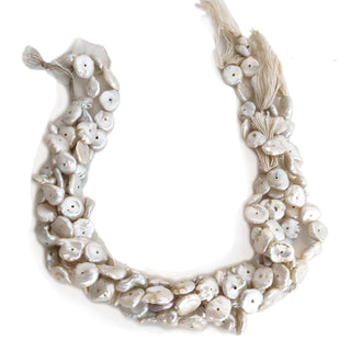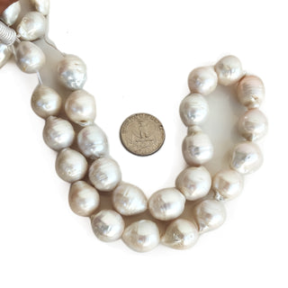 White Centre Drilled Fresh Water Potato Pearl Beads, 14mm to 16mm Each High Lustre Fancy Shaped Loose Pearls, 10 Inch Strand, GDE170