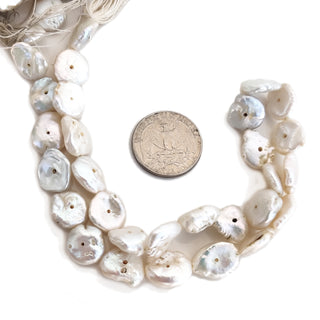 Natural White Coin Freshwater Pearl Beads, 11mm to 12mm High Quality Drilled Pearls for Making Jewelry, 15 Inch Strand, GDE146