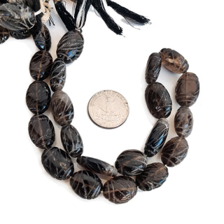 Natural Smoky Quartz Carved Tumbles Beads, 13mm to 18mm Brown Gemstone For Jewelry, 16 Inch Strand, GDE163