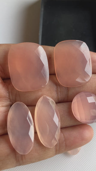 2 Pieces 17mm/25x13mm/25x20mm Each Rose Chalcedony Mixed Shaped Faceted Loose Rose Cut Gemstone Cabochon For Making Jewelry, GDS2274/7