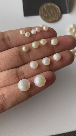 4mm/5mm/6mm/8mm Natural Fresh Water White Round Button Pearls Cabochons, 10 Pieces/20 Pieces White Pearl Gemstone For Jewelry, GDS1227/1