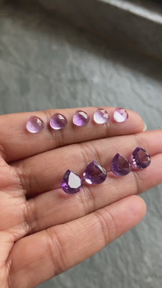 7 Pieces 9mm Natural Amethyst Heart Shaped Faceted Double Cut Loose Cabochons/ 7mm Heart Shape Amethyst Rose Cut Flat Back Gemstone, BB367