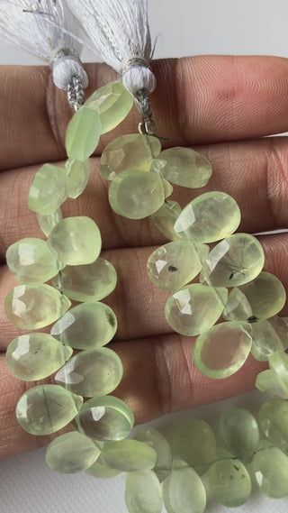 All 10mm Natural Green Prehnite Faceted Pear Shaped Briolette Beads, Prehnite Gemstone Beads Loose For Jewelry, 8 Inch Strand, GDS2275/23