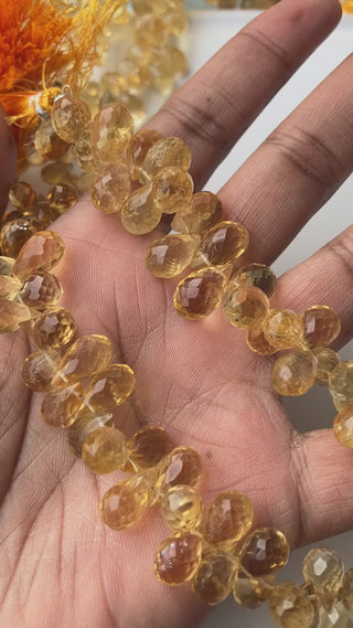 Natural Citrine Faceted Teardrop Briolette Beads, 8mm to 13mm Citrine Teardrop Gemstone Beads Loose For Jewelry, 9 Inch Strand, GDS2276/12