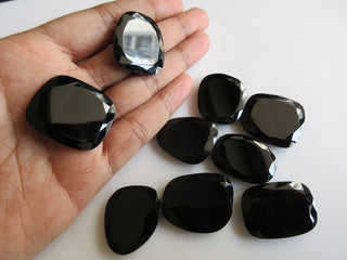 2 Pieces 26mm to 28mm Each Huge Black Onyx Rose Cut Flat Back Black Color Loose Cabochons GFJ