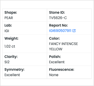IGI Certified 1.02 Cts/8.75mm Fancy Intense Yellow SI2 Pear Shaped Lab Grown Diamond/CVD Loose For Engagement Ring, Ready To Ship, TV5626-C