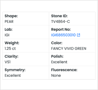 Pear Shaped IGI Certified 1.25CTW Fancy Vivid Green/VS1 Lab Grown Diamond Perfect for Engagement Ring, Gift For Her, Ready to Ship, TV4864-C