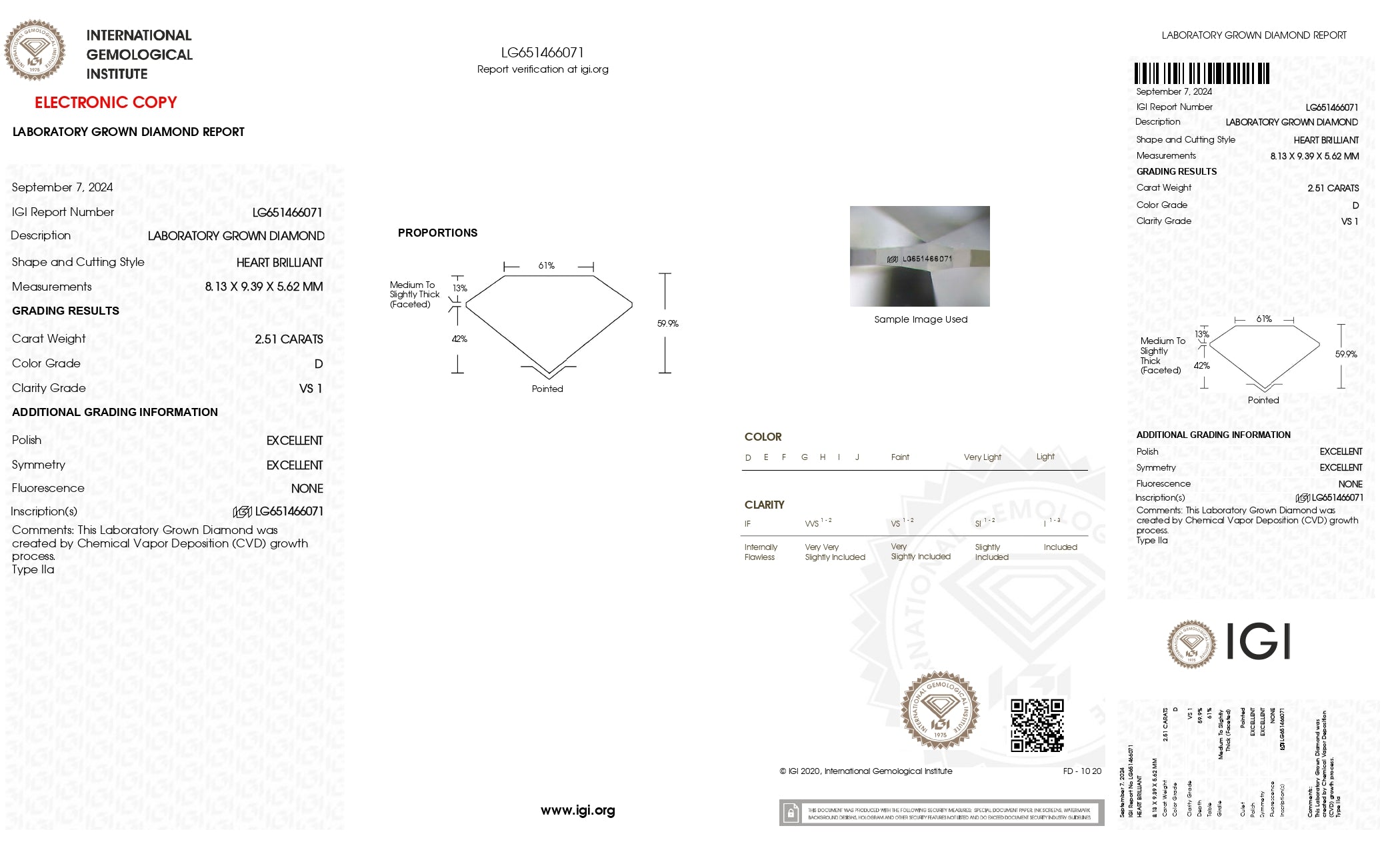 This listing is for 2.51CTW IGI Certified D/VS1 Heart-Shaped Lab Grown Diamond Loose for Engagement Ring โ In Stock & Ready to Ship, TV1732.