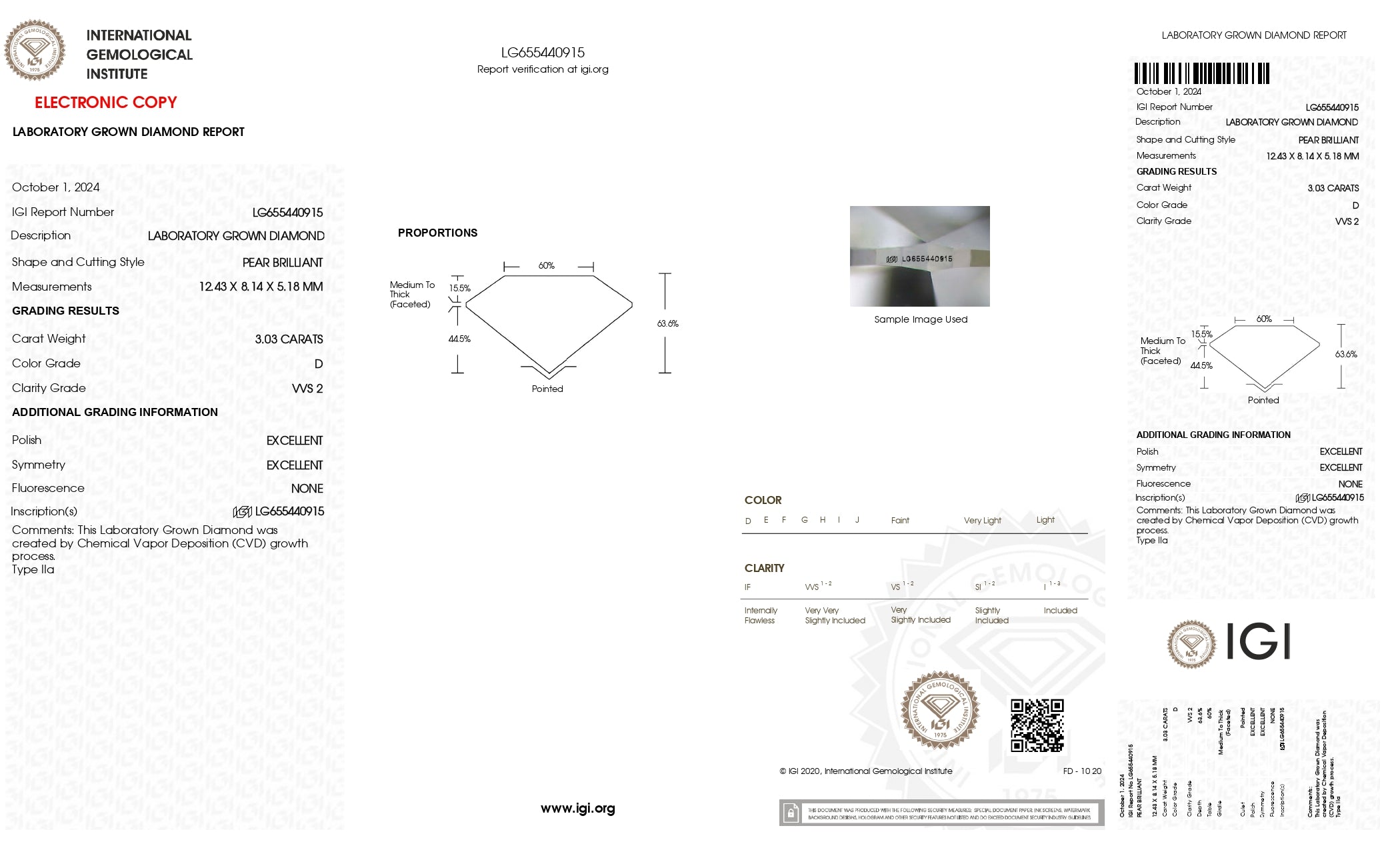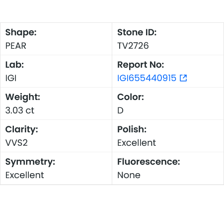 3.03CTW IGI Certified D/VVS2 Pear-Shaped Lab Grown Diamond โ€“ Loose & Ready to Ship for Engagement Ring, TV2726