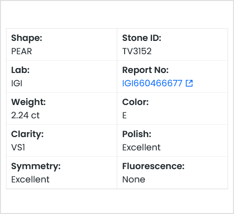 IGI Certified 2.24CTW E/VS1 Pear Shaped Lab Grown Diamond Loose โ€“ Ideal for Engagement Ring, Ready to Ship, TV3152