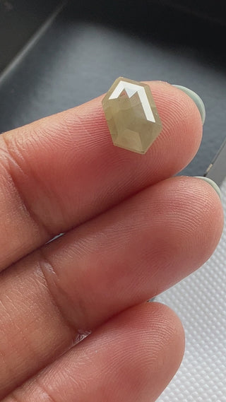 10.5mm/1.63CTW Clear White Grey Fancy Shield Shaped Long hexagon Rose Cut Loose Diamond, Faceted Flat Back Diamond Cabochon, DDS773/12