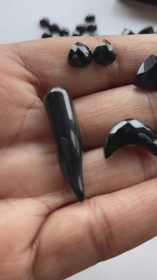 Black Onyx Fancy Shaped Calibrated Gemstones Loose, Rose Cut Pear Coffin Shape, Trillion, Horn, Crescent Moon Black Onyx Gemstone Loose, RS1