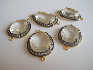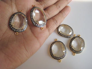 5 Pieces Quartz Crystal Rose Cut Connectors, White Topaz Pave, Bezel Connectors, 925 Sterling Silver Jewelry Connectors, SKU-C28
