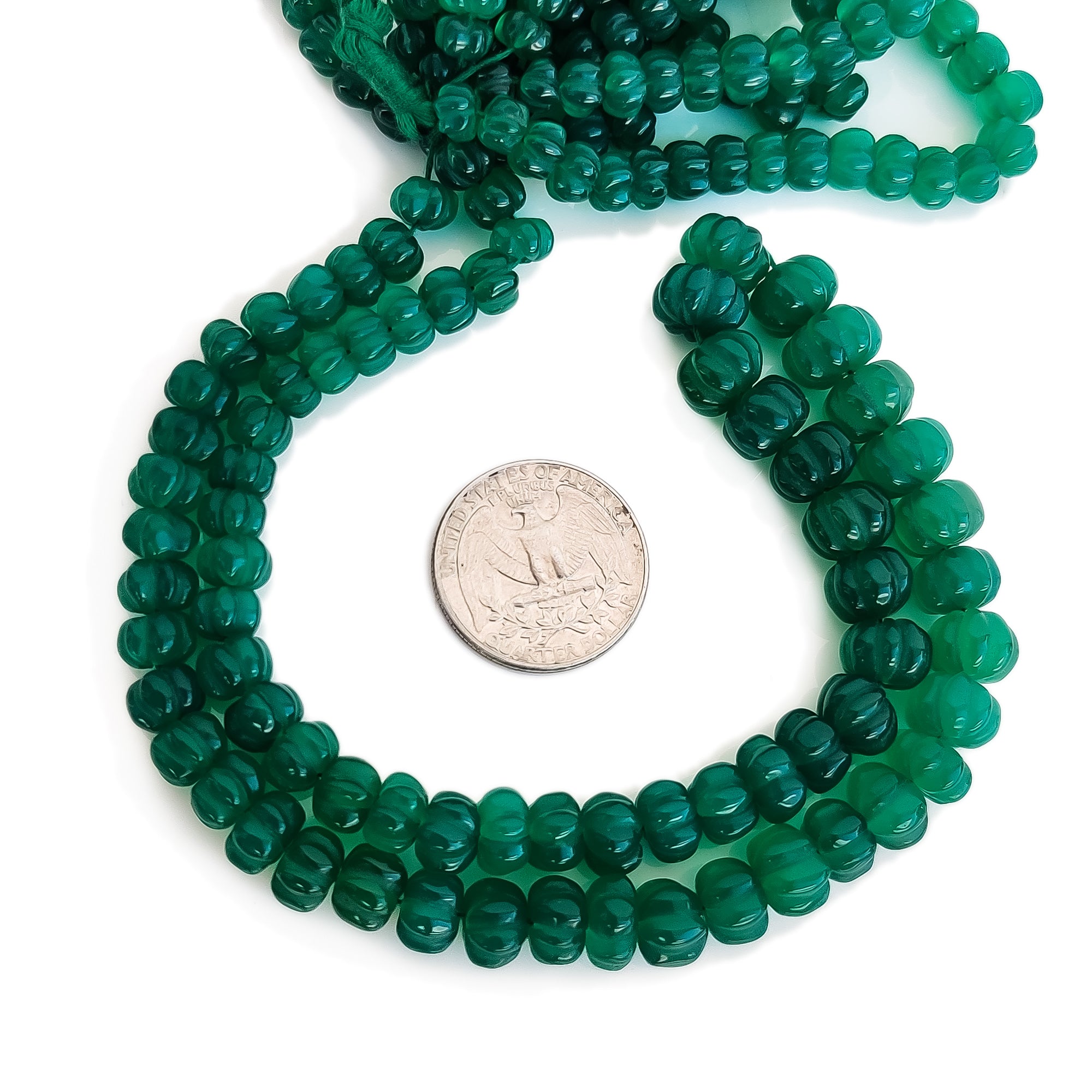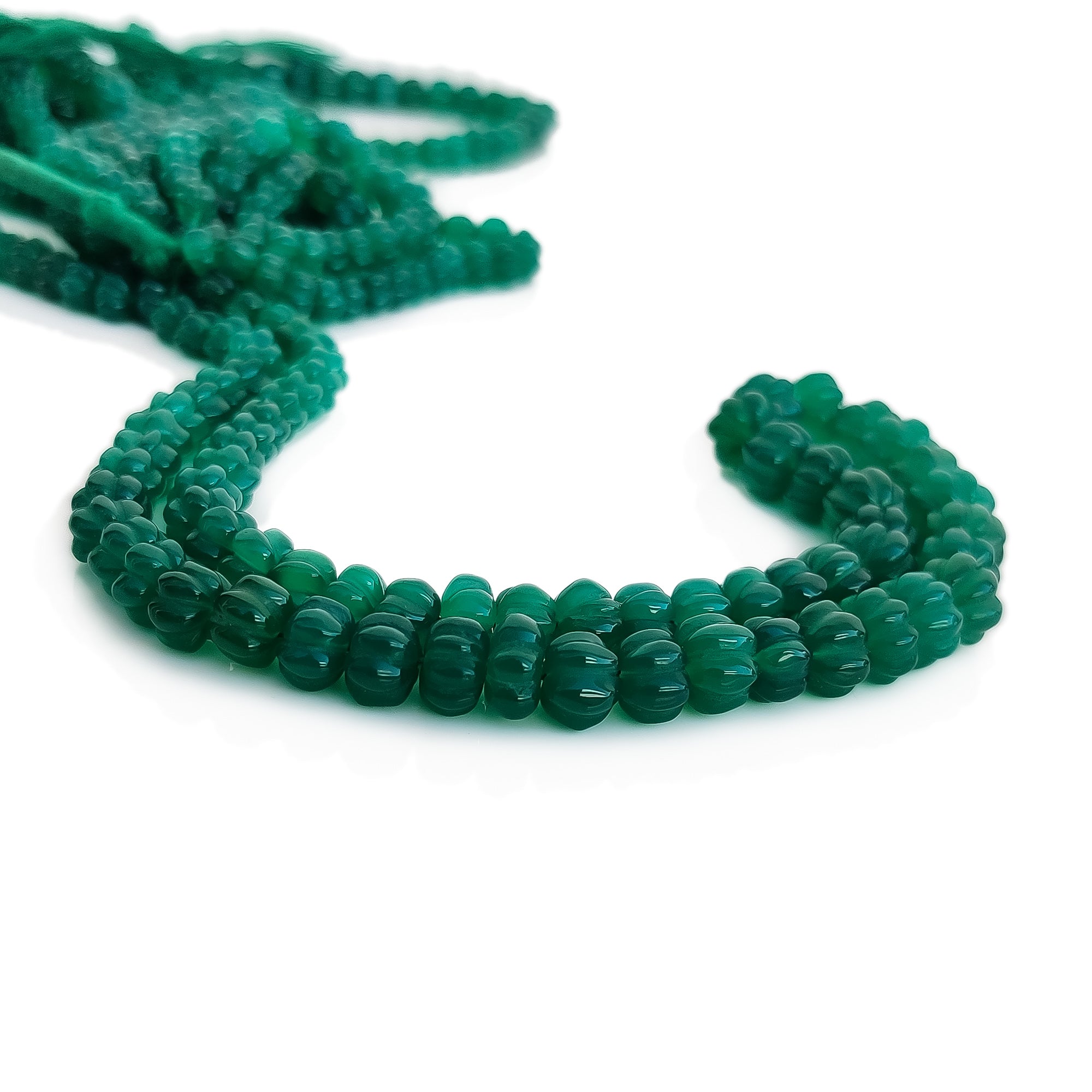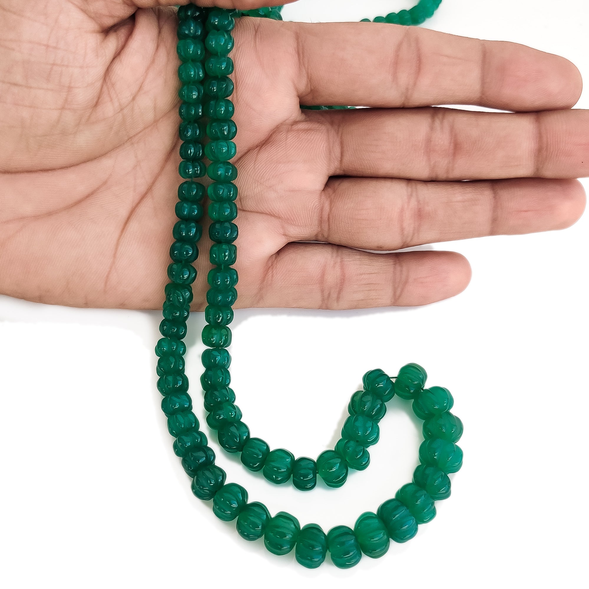 Green Onyx Carved Melon Beads, 6mm to 11mm Green Onyx Gemstone Beads For Jewelry, 18 Inch Strand, GDE151