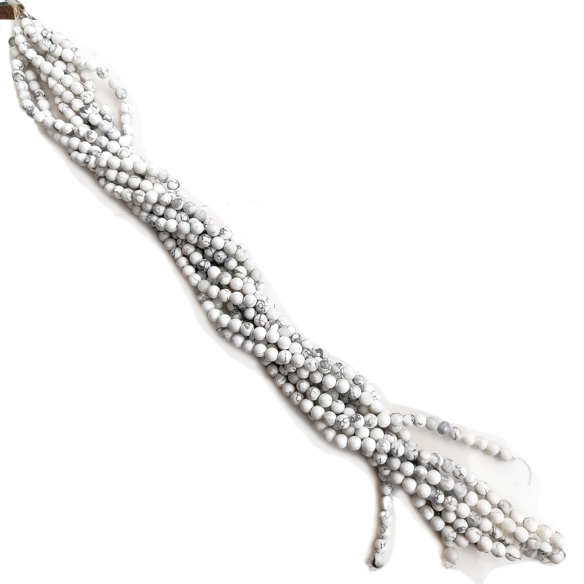 Natural Howlite Smooth Round Shaped Gemstone beads, 6.5mm Howlite For Making Jewelry, 15 Inch Strand, GDE101
