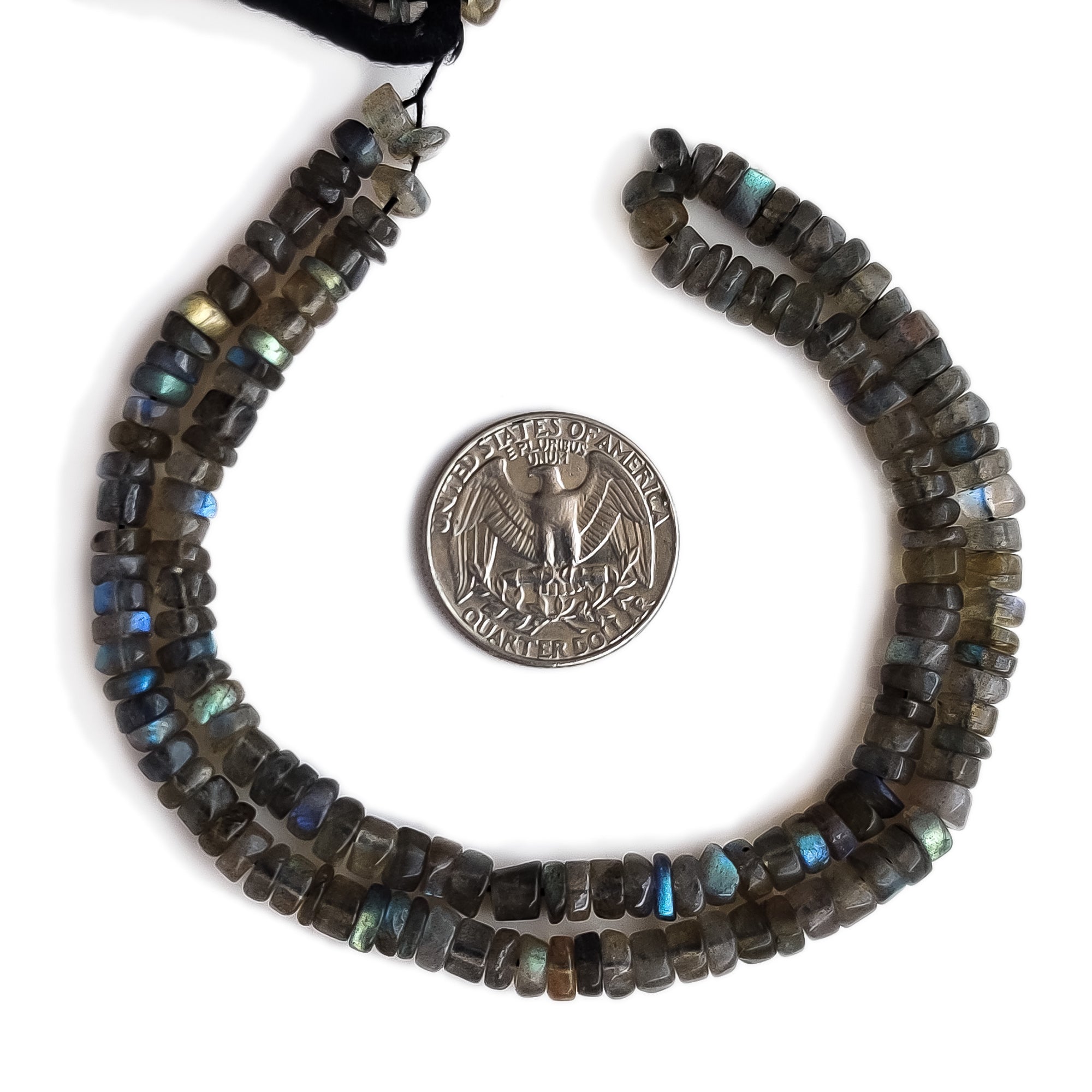 Natural Labradorite Gemstone Beads, 5mm Smooth Tyre Shape – 16 Inch Strand for DIY Jewelry, GDE63.