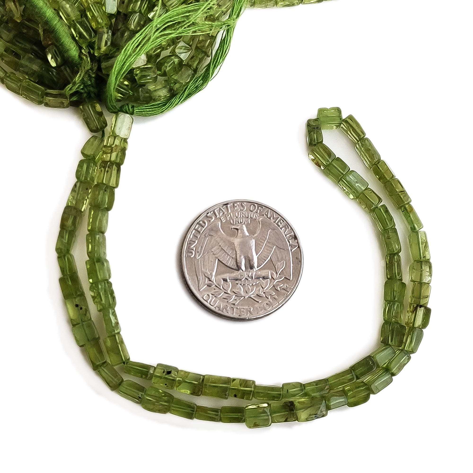 This listing is for Natural Peridot Smooth Square Shaped Beads, 3.5mm Peridot Gemstone For Jewelry, 12.5 Inch Strand, GDE196.