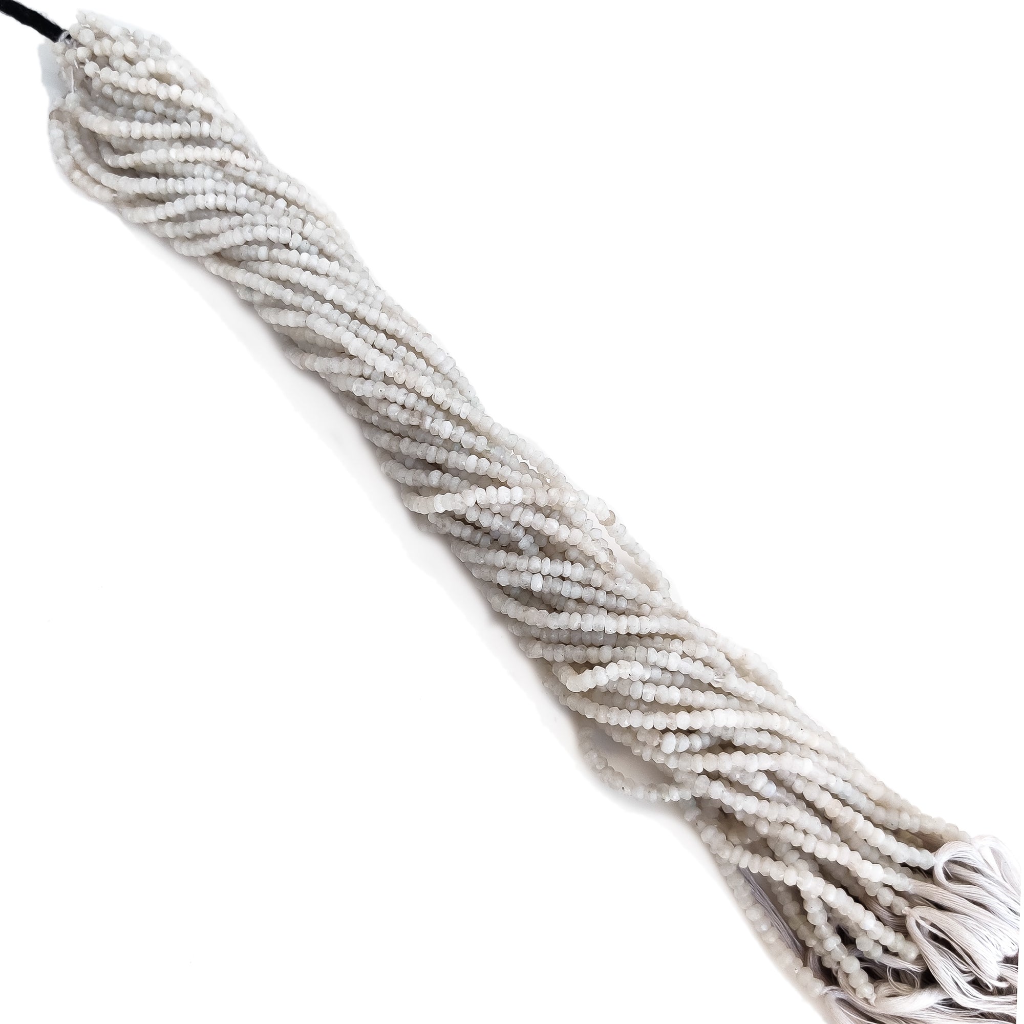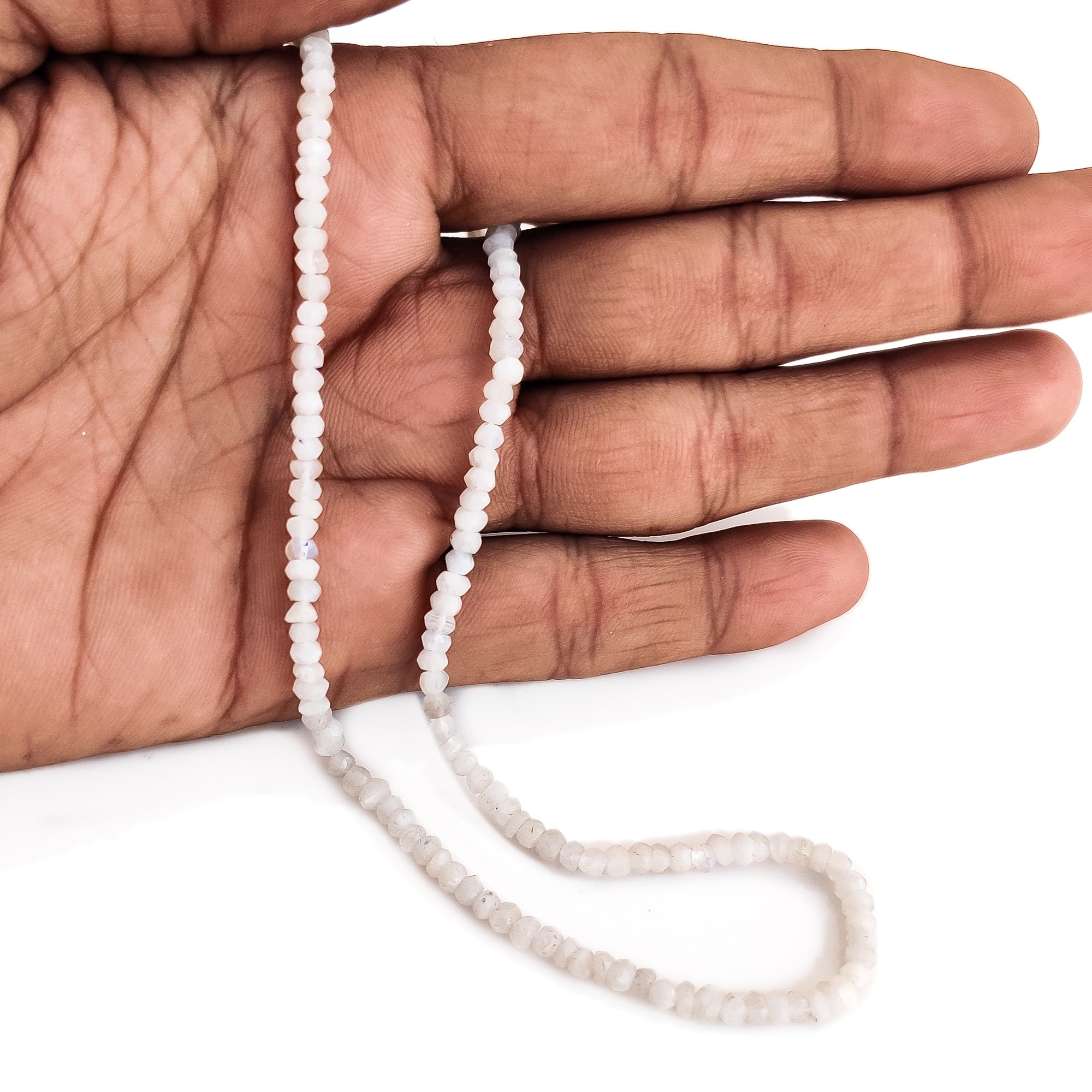 Natural Rainbow Moonstone Rondelle Beads - 4mm Faceted White Gemstones For Jewelry, 13 Inch Strand, GDE169