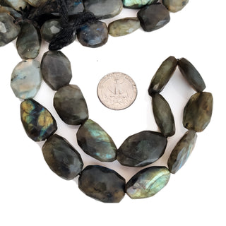 Labradorite Step Cut Faceted Tumble Beads, 16mm to 20mm Labradorite Nugget Gemstone For Jewelry, 15 Inch Strand, GDE229