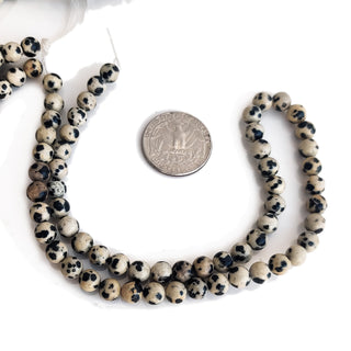 7mm Natural Dalmatian Jasper Spotted Jasper Smooth Round Beads, Dalmatian Spotted Jasper Round Beads For Jewelry, 15 Inch Strand, GDE141