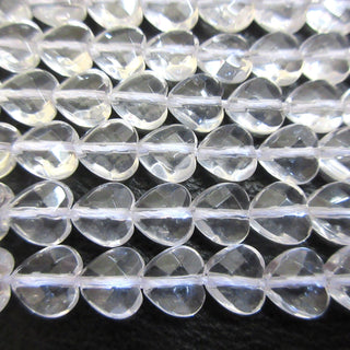 Crystal Quartz Faceted Heart Beads, Natural Rock Quartz Crystal Straight Drilled Heart Beads, 8mm Clear Quartz Beads, 14", GDS1391/2