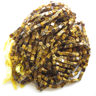 AAA Natural Tiger Eye Smooth Box Beads, Tigers Eye Plain Box Beads, Tiger Eye Cubes, Tiny 5mm Tiger Eye Box Beads, 13 Inch Strand, GDS1346