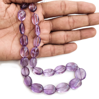 Natural Amethyst Oval Shaped Smooth Tumble Beads, 10mm to 14mm Purple Amethyst Gemstone For Jewelry, 16 Inch Strand, GDE122