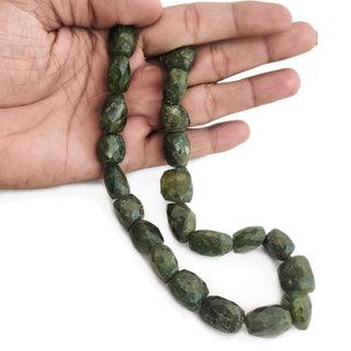 Natural Vessonite Faceted Tumble Beads, 11mm to 18mm Green Vessonite Gemstone Stone For Making Jewelry, 16 Inch Strand, GDE133