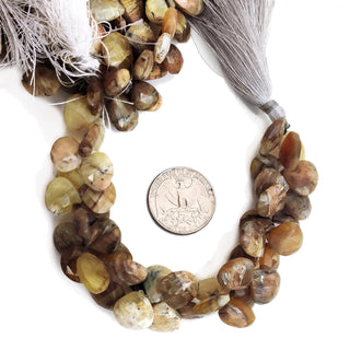 Crazy Lace Agate Faceted Heart Shaped Beads, 9mm to 15mm Yellow Lace Agate Gemstone Beads For Jewelry, 8 Inch Strand, GDE135
