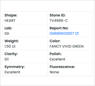 IGI Certified 1.50CT/6.94mm Fancy Vivid Green/SI1 Heart Shaped Lab Grown Diamond Loose For Engagement Ring, Ready To Ship, TV4996-C