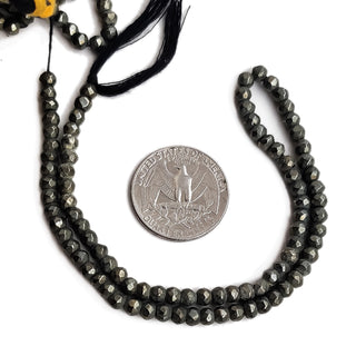 Natural Pyrite Faceted Rondelle Beads, 4mm to 4.5mm Pyrite Gemstone For Making Jewelry, 13 Inch Strand, GDE112