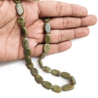 Natural Vessonite Smooth Oval Shaped Step Cut Centre Drilled Gemstone Beads, 7mm to 10mm Vessonite Green Stone, 13 Inch Strand, GDE120