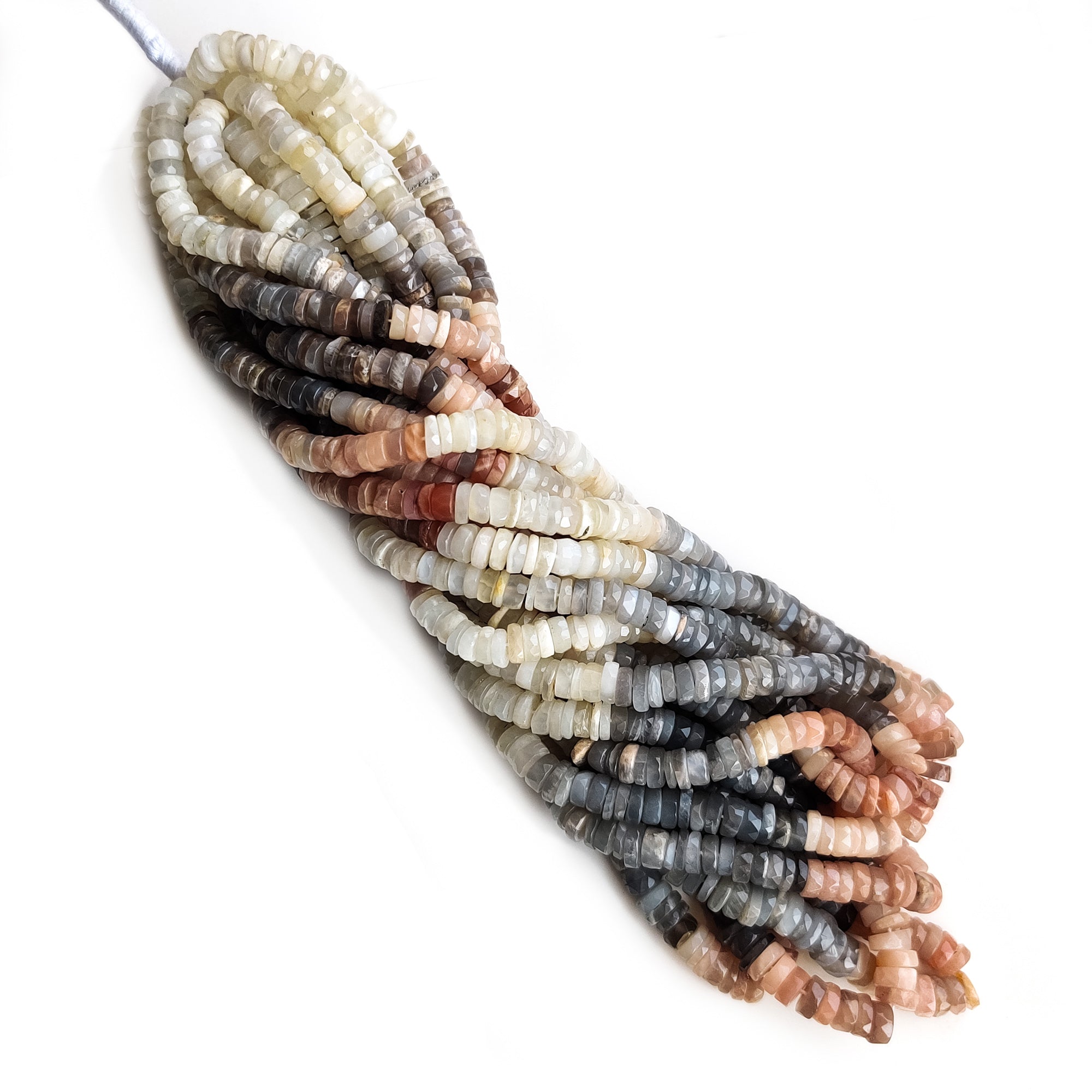 Multi Moonstone Faceted Tyre Beads – 6mm to 7mm Multi Gemstone Beads, 16-Inch Strand for Jewelry Making, GDE47