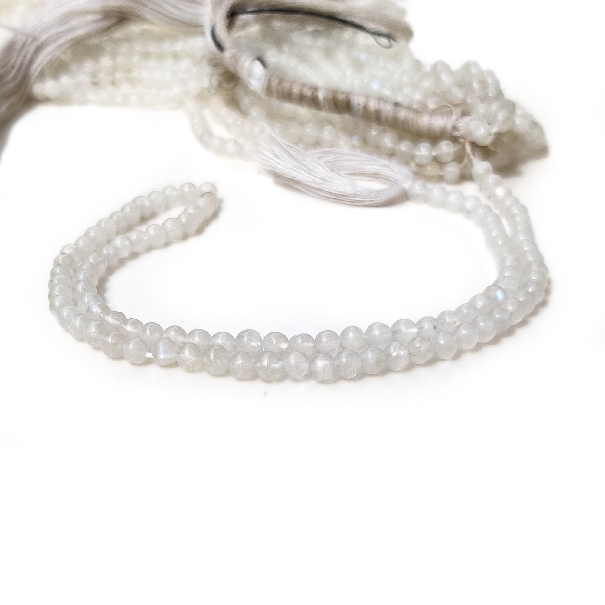 This listing is for Natural Rainbow Moonstone Round Shaped Beads - 4mm Faceted White Gemstones, 13 Inch Strand, GDE25