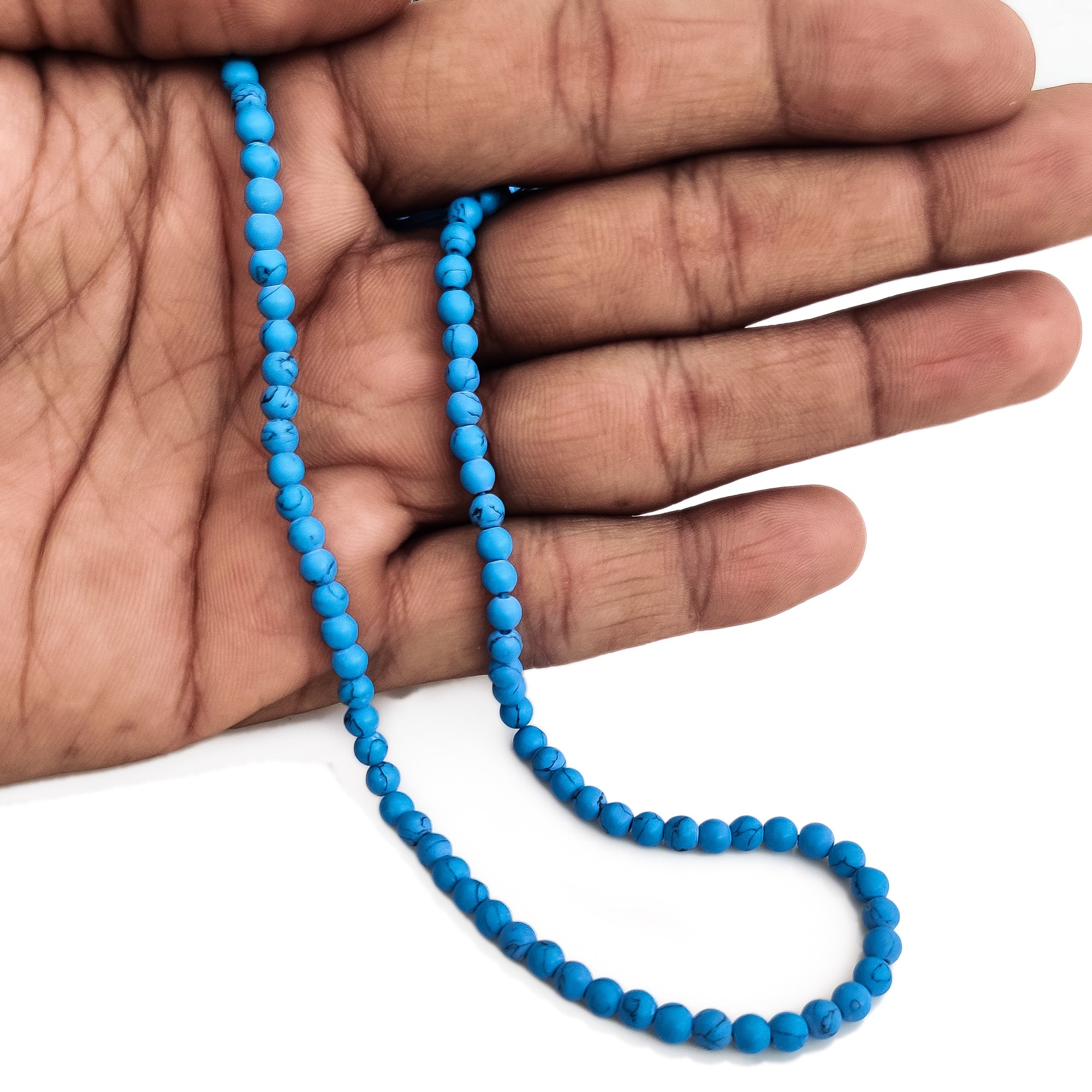 Natural Turquoise Blue Smooth Round Shaped Beads – 4mm Gemstone, 12 Inch Strand for Jewelry Making, GDE128