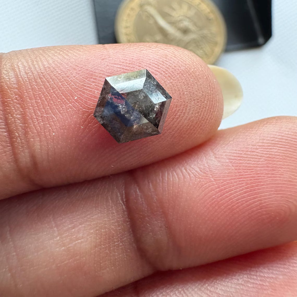 This listing is for 1.18CTW/7.1mm Clear Black Salt And Pepper Hexagon/Shield Shaped Rose Cut Loose Diamond, Faceted Rose Cut Diamond For Ring, DDS778/12.
