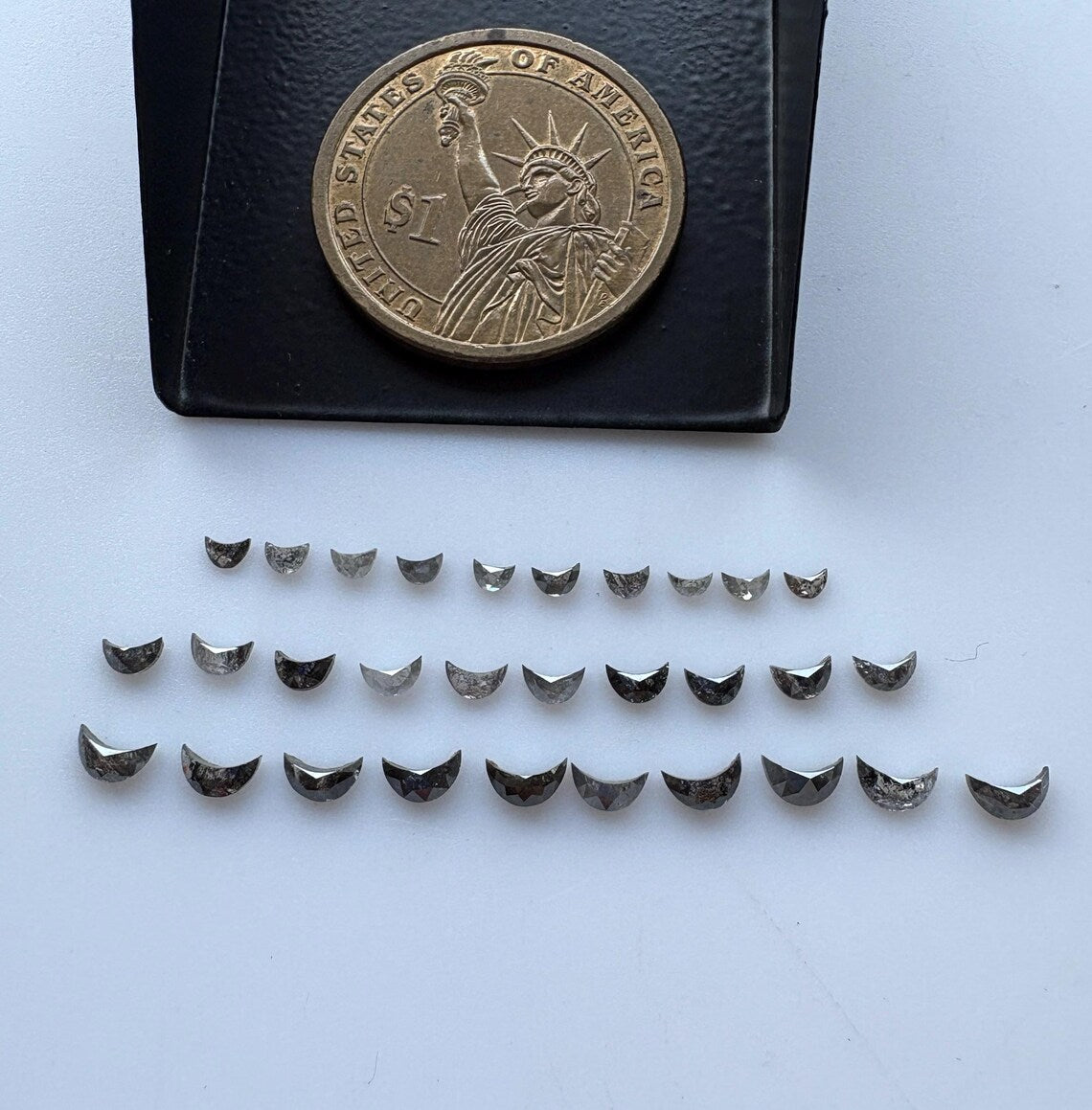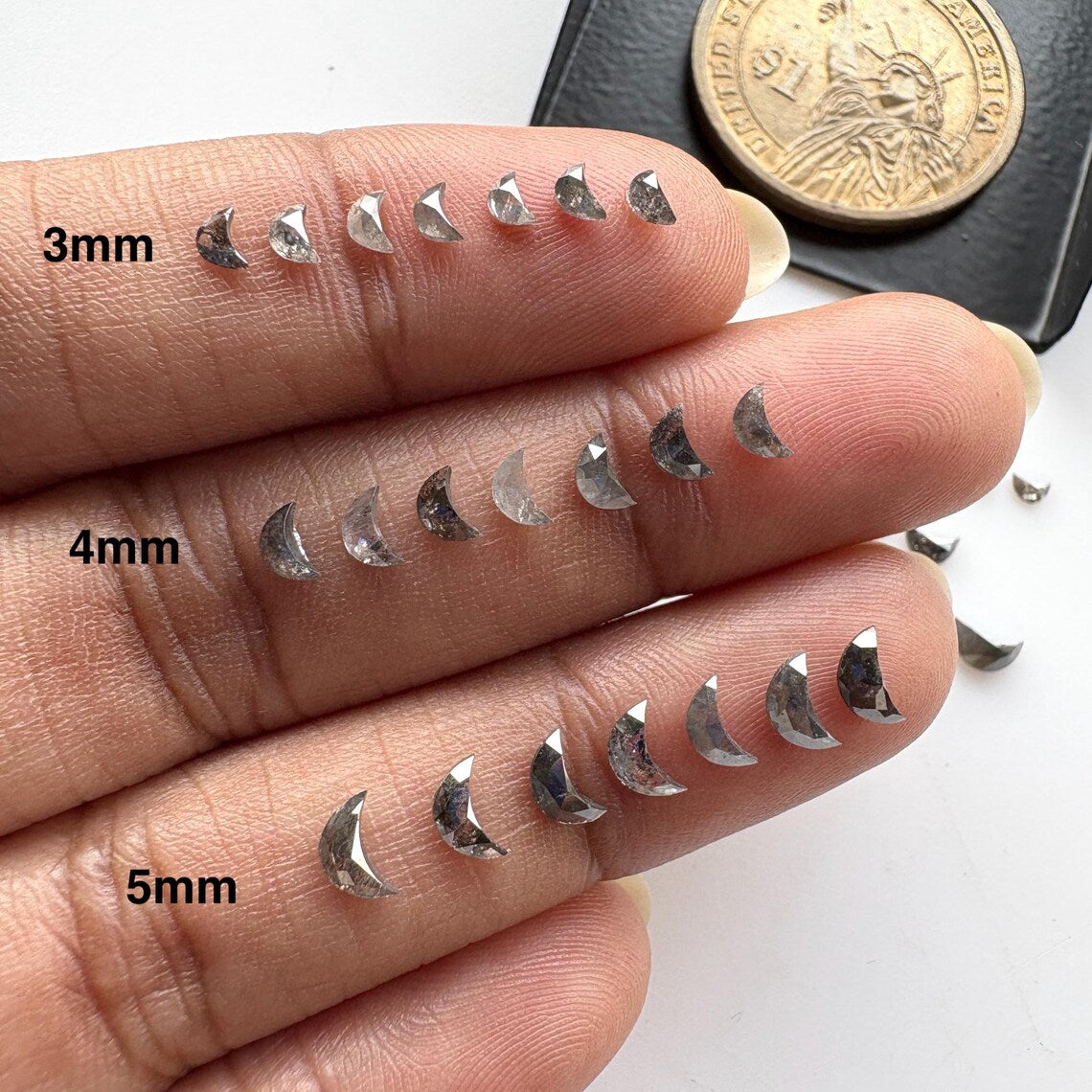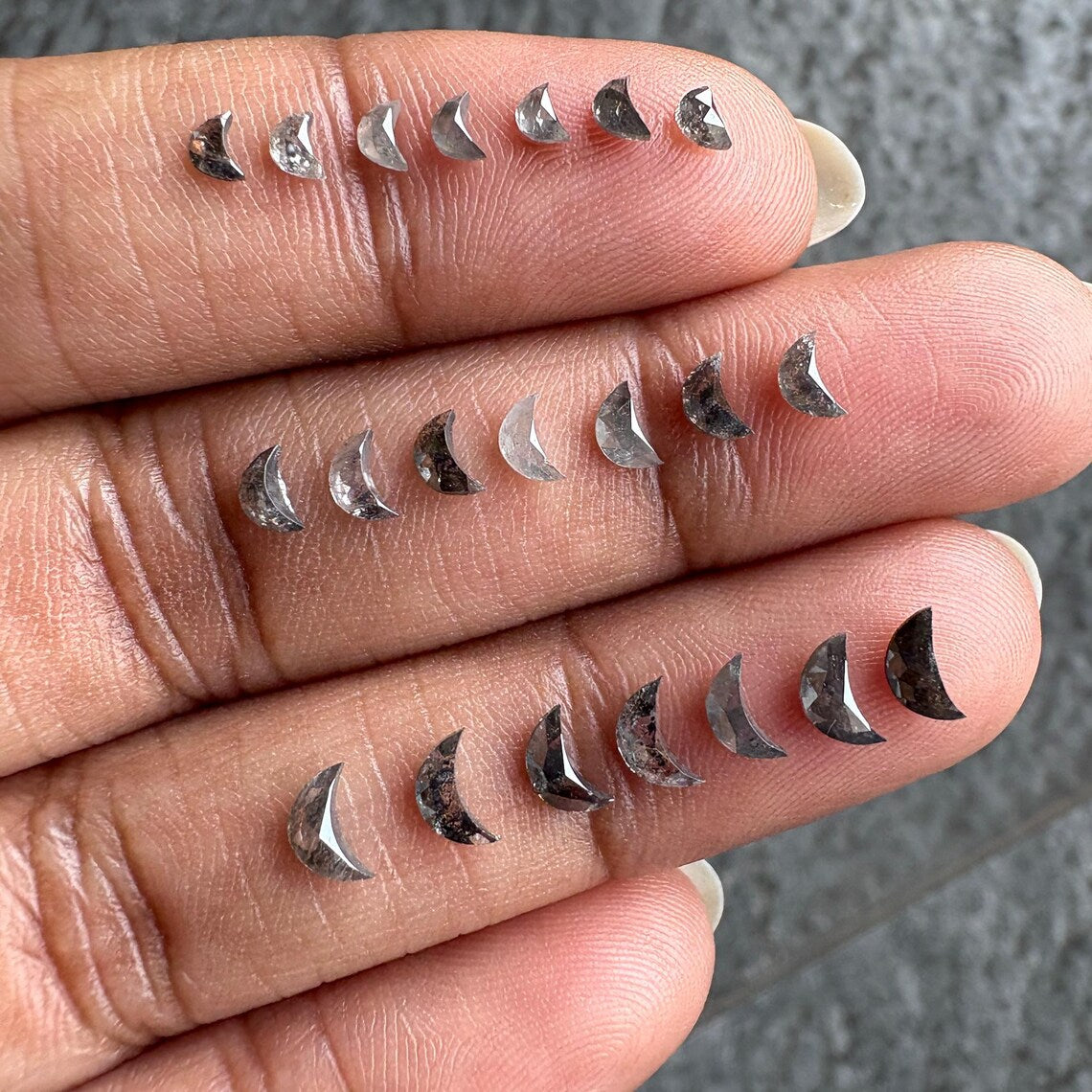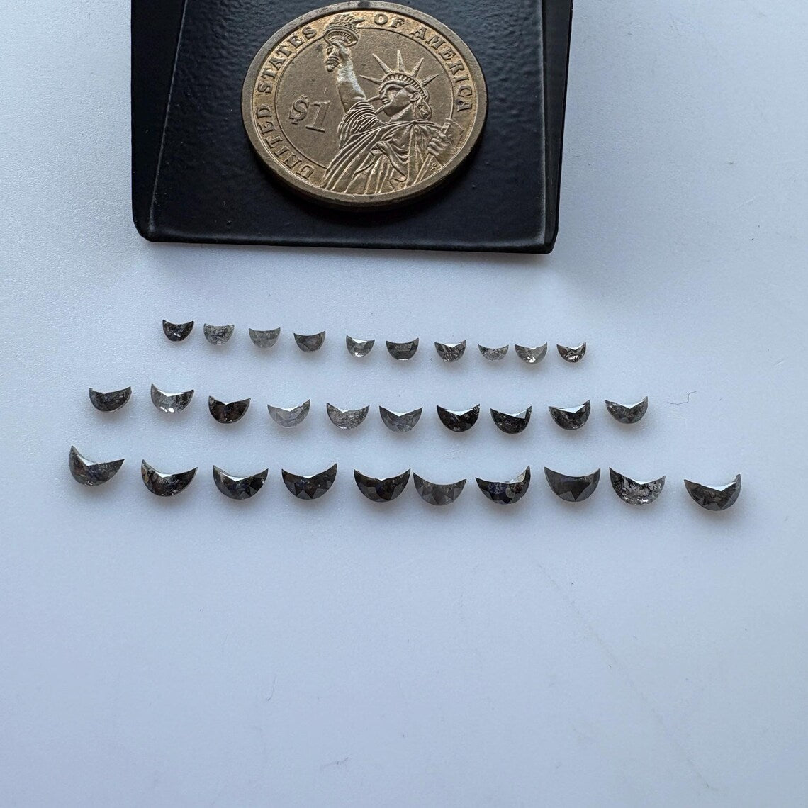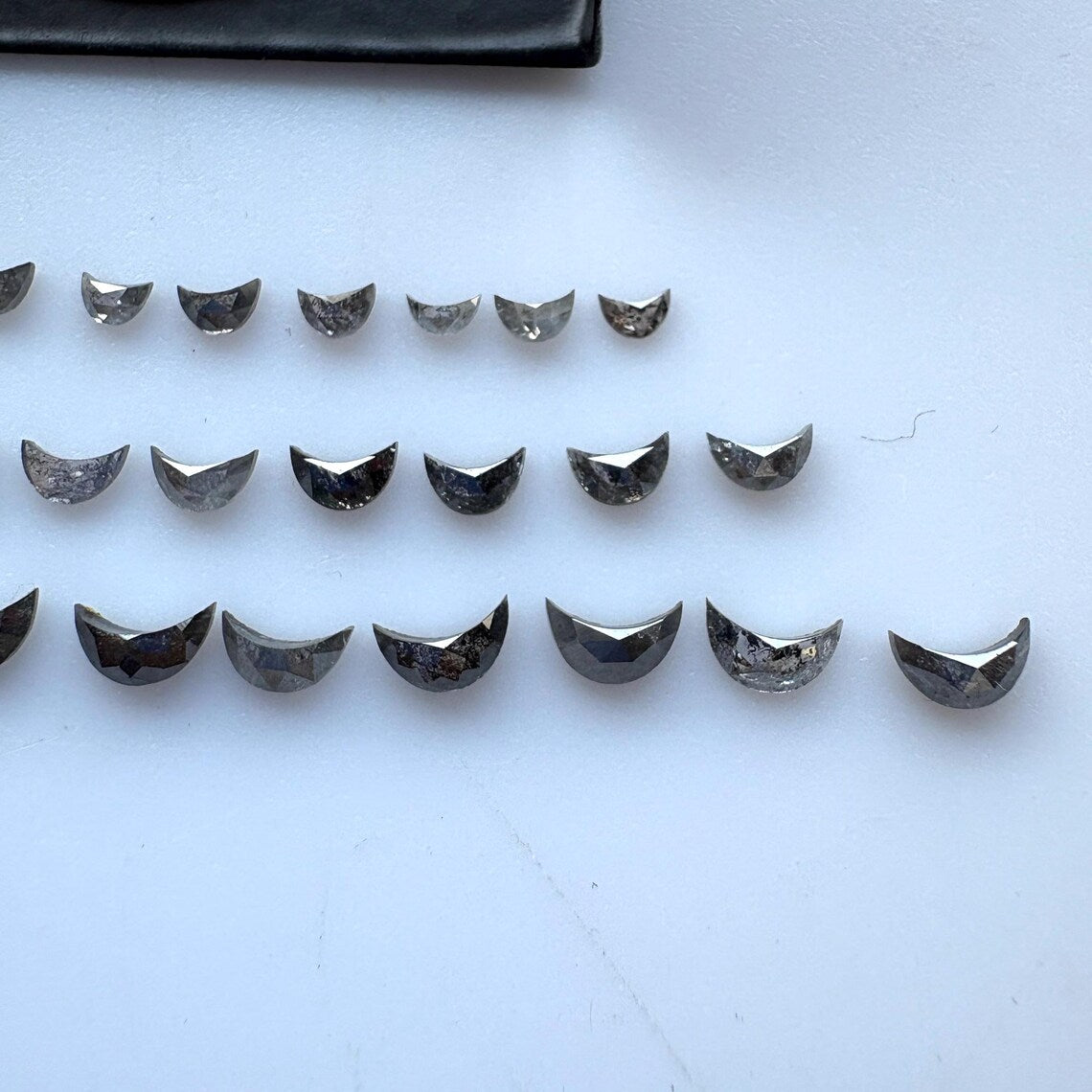2 Pieces 3mm/4mm/5mm Black Salt and Pepper Half Crescent Moon Rose Cut Diamond Loose Cabochon, Calibrated Moon Shape Diamond, DDS680/40