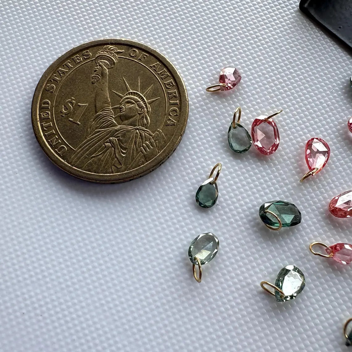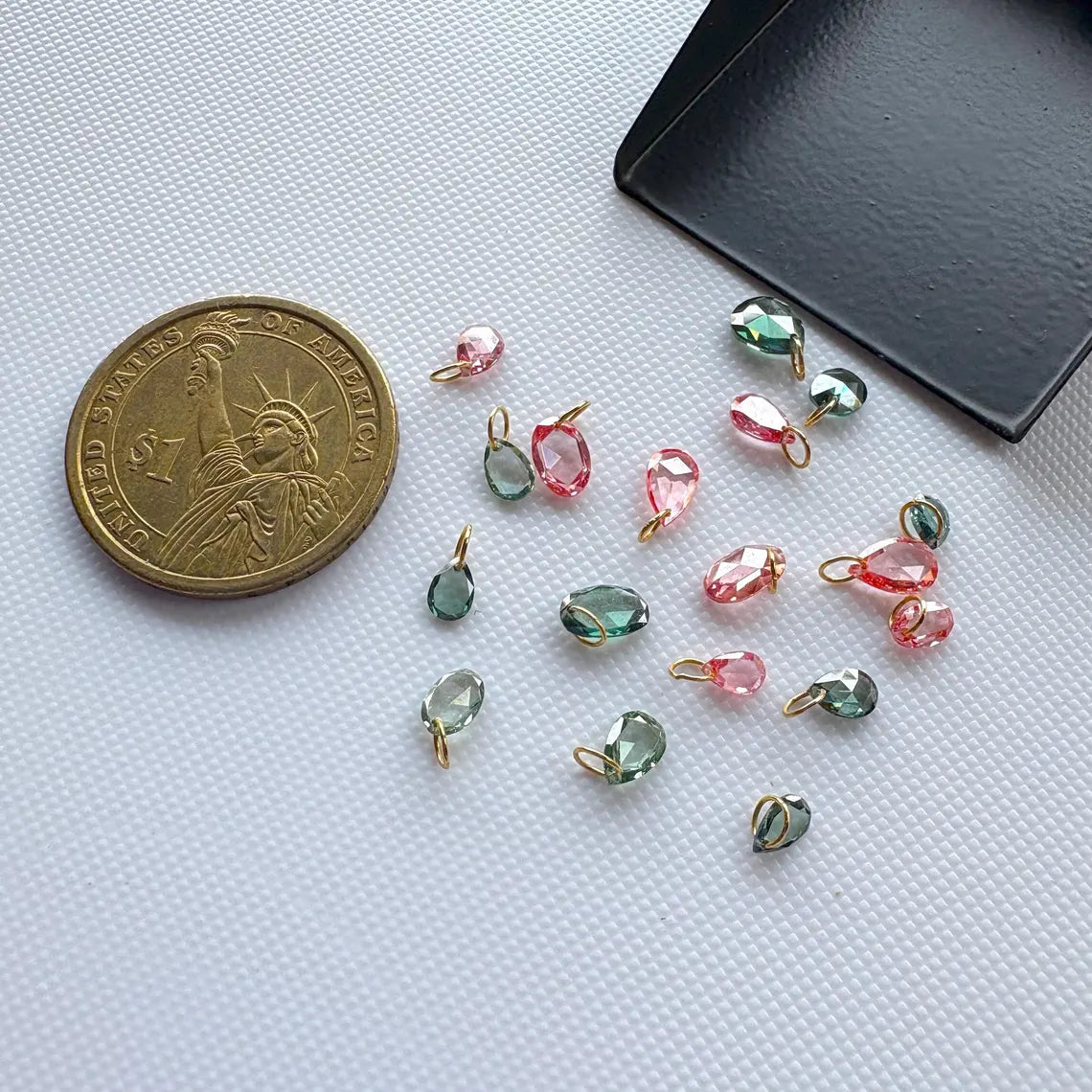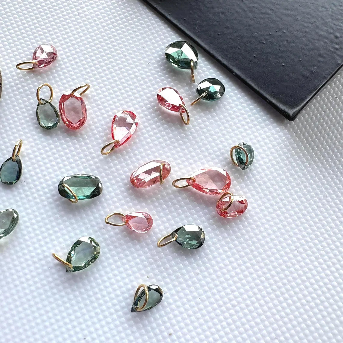 This listing is for 5 Pieces 14K Gold Pink Blue Rose Cut Lab Grown Diamond Loose Connector, Flat Back Diamond slices (4-5mm/5-8mm) LG53.ย