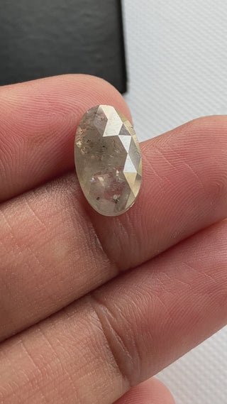 2.70CTW/13.8mm Clear Grey Oval Shaped Rose Cut Loose Diamond, Faceted Rose Cut Natural Diamond Loose For Jewelry, DDS773/2
