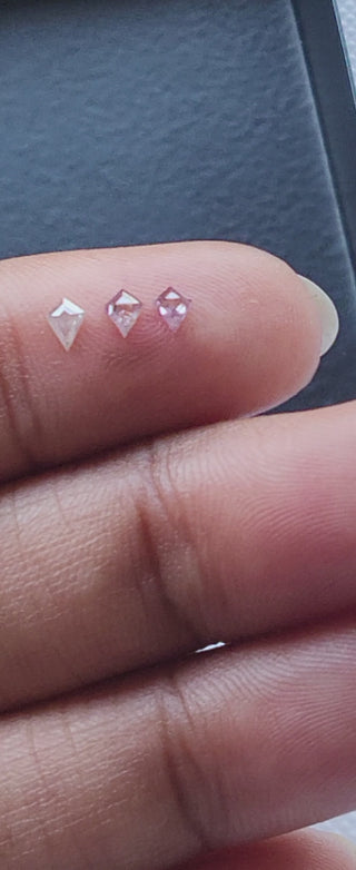 3 Pieces 0.19CTW/3.5mm Clear Pink Fancy Kite Shaped Faceted Rose Cut Diamond Loose, Pink Rose Cut Loose Diamond For Ring, DDS783/1