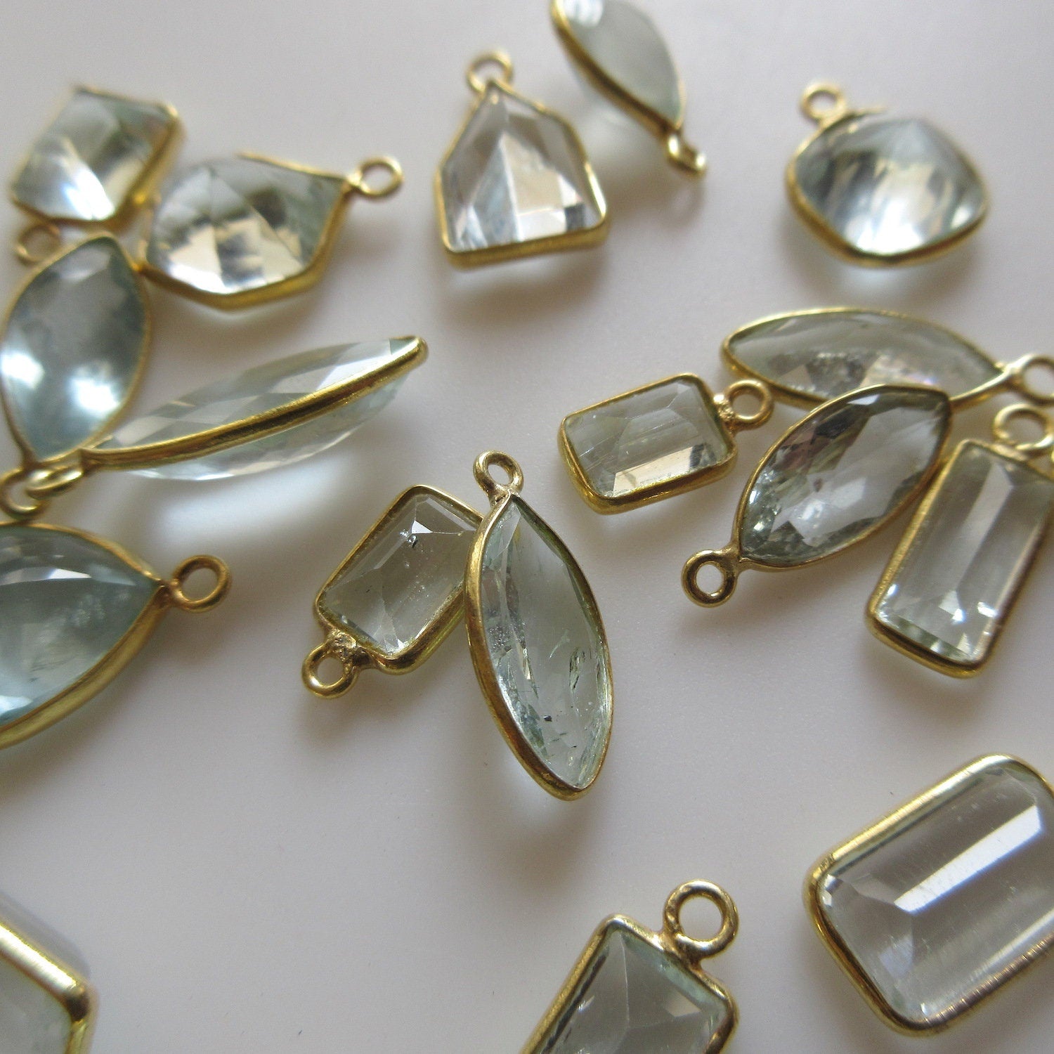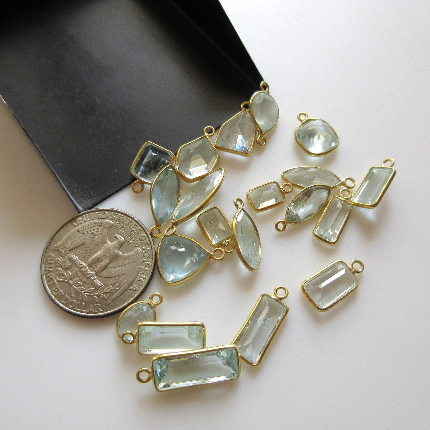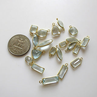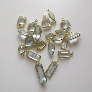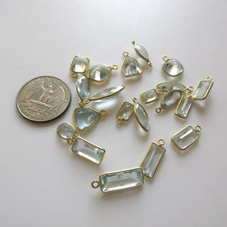 5 Pcs Natural Aquamarine 925 Silver Bezel 9mm To 18mm Mix Shape Connector Charms, Single Loop Aquamarine Gemstone Connector Charm GDS1673