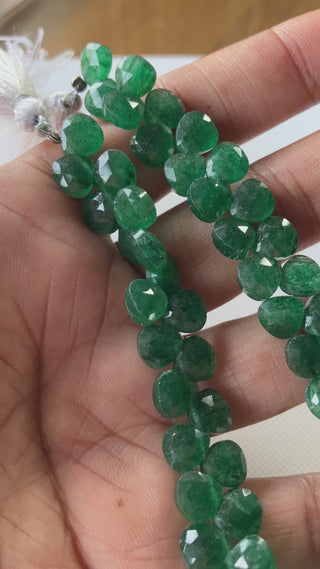 All 7mm Natural Green Strawberry Quartz Faceted Heart Briolette Beads, Strawberry Quartz Heart Gemstone Beads, 8 Inch Strand, GDS2275/11