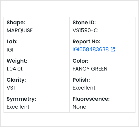 This listing is for IGI Certified 1.04CTW Green Marquise Shaped VS1 Clarity Lab Grown Diamond Loose for Engagement Ring - Ready to Ship, Gift for Her, VS1590-C.ย