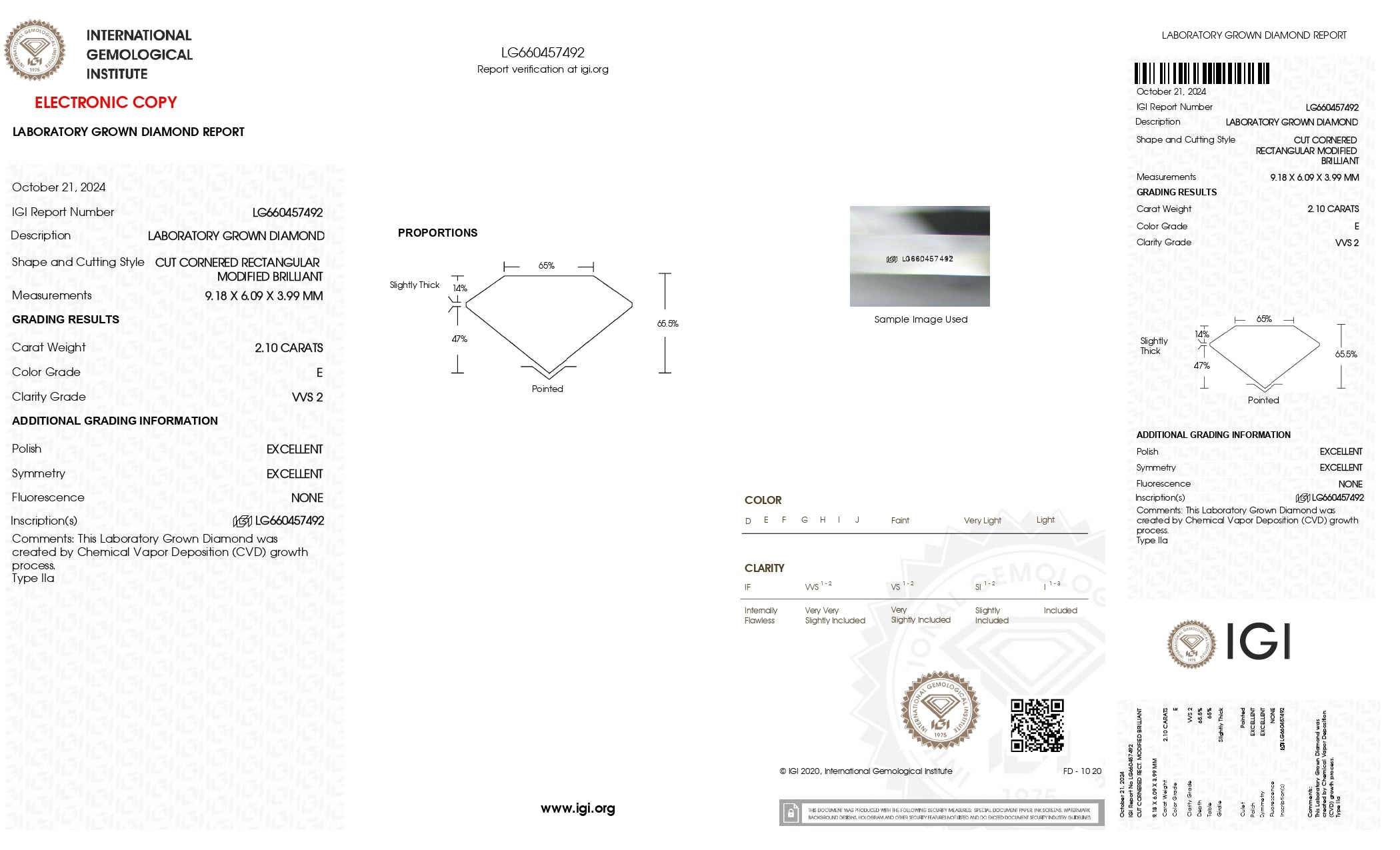 In Stock 2.10CTW Radiant Cut Lab Grown Diamond, E/VVS2, IGI Certified, Loose Stone for Engagement Ring - Ready to Ship, VS1708