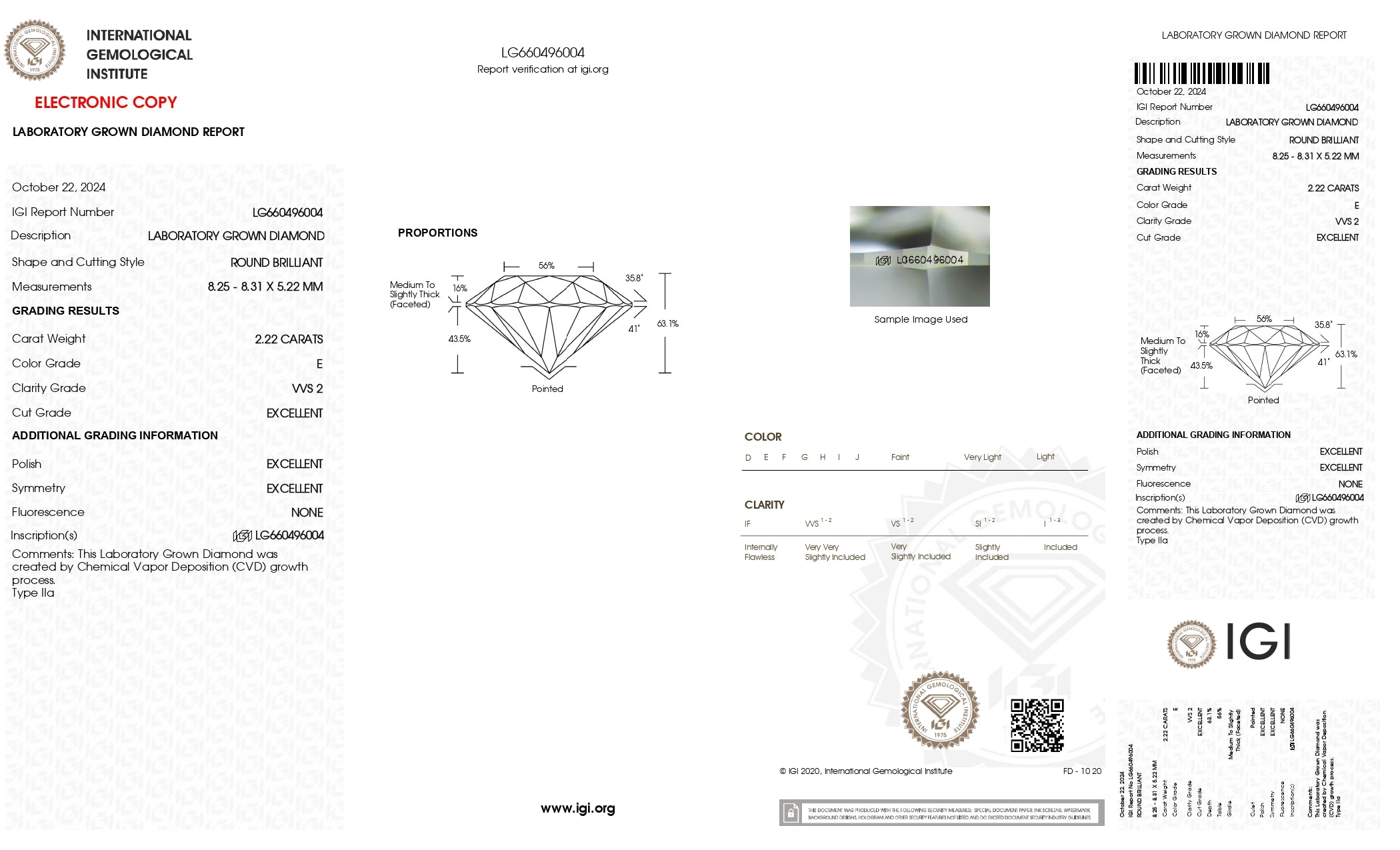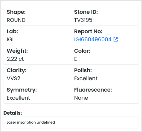 This is In Stock IGI Certified 2.22 CTW E/VVS2 Round Shaped Brilliant Cut Lab Grown Diamond Loose For Engagement Ring, Ready To Ship, TV3195.
