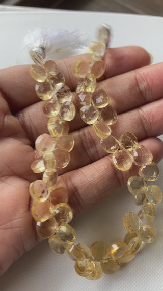 Natural Yellow Citrine Heart Shaped Briolettes Beads, Citrine Faceted Heart Beads, All 7mm Citrine Gemstone Beads, 8 Inch Strand, GDS2275/7